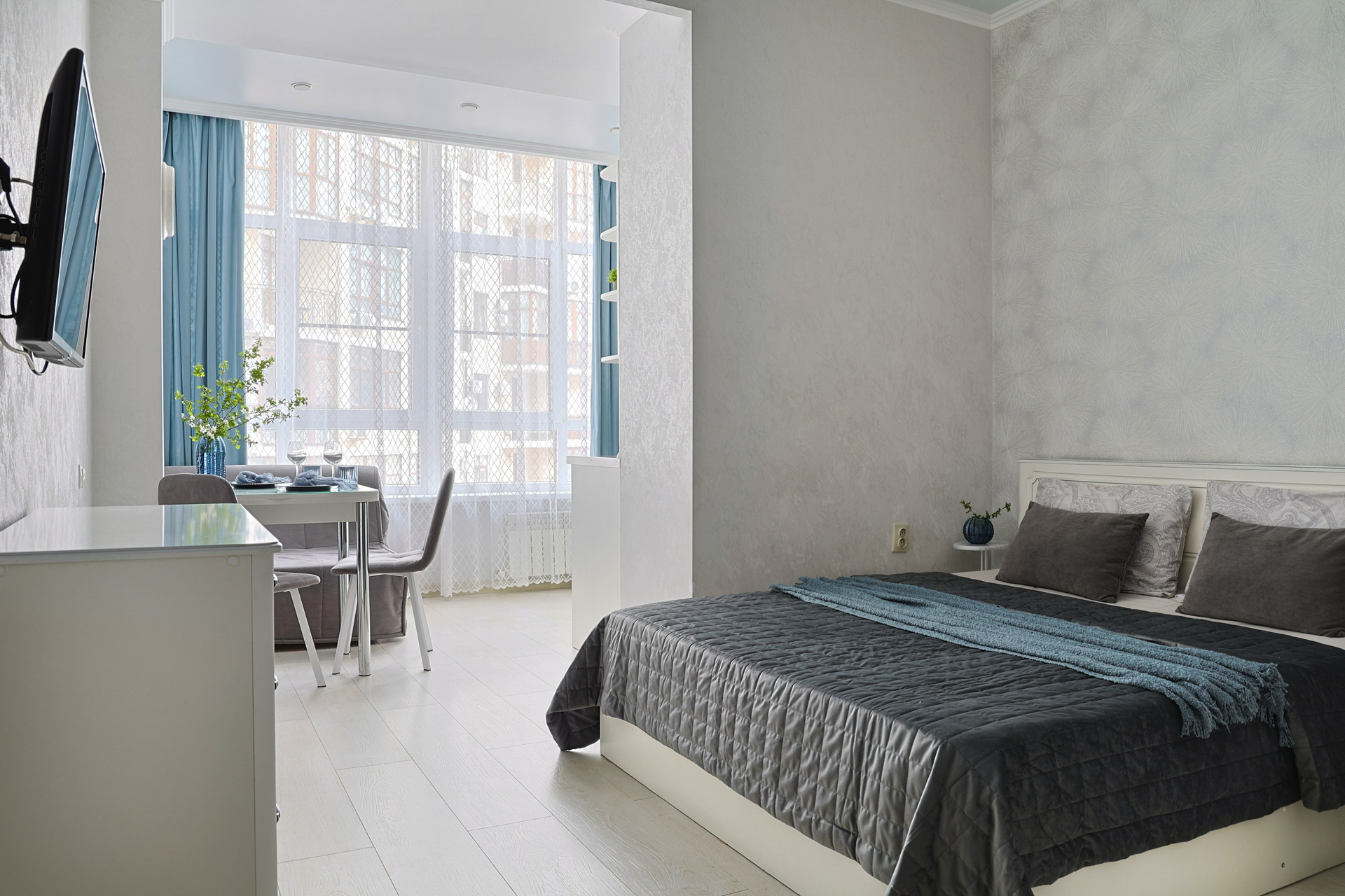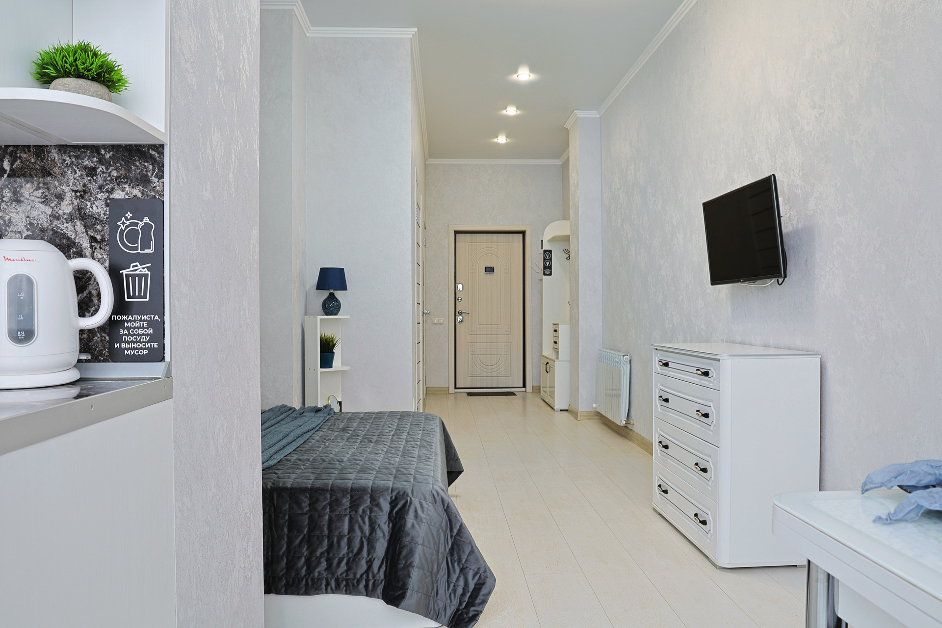 Задача: у рантье были самостоятельные фото, на которых тёмная студия выглядела тесной, простой и менее привлекательной, чем в жизни — нужно было исправить подачу и показать объект светлее, уютнее и визуально просторнее
